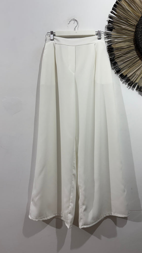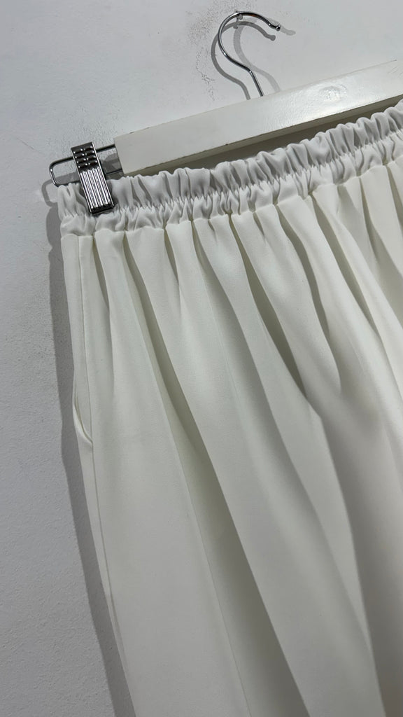 Pantalón de corte recto en color blanco. Es súper cómodo y el tejido es fluido, tiene goma en la cintura en la parte de atrás, cinturilla en la parte delantera y bolsillos laterales.