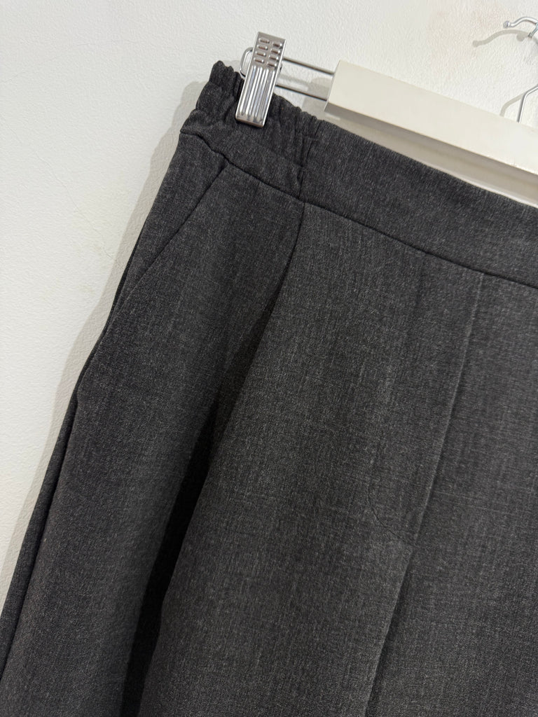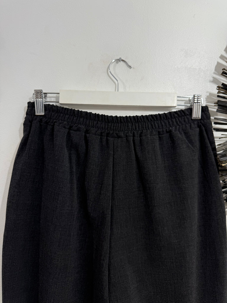 Conjunto dos piezas en color gris marengo, compuesto por blazer y pantalón. La blazer es de corte recto con botón en parte central y puños con vuelta con estampado de raya diplomática. El pantalón es de tipo Mom fit con goma en la cintura, se ajusta genial y bolsillos laterales.