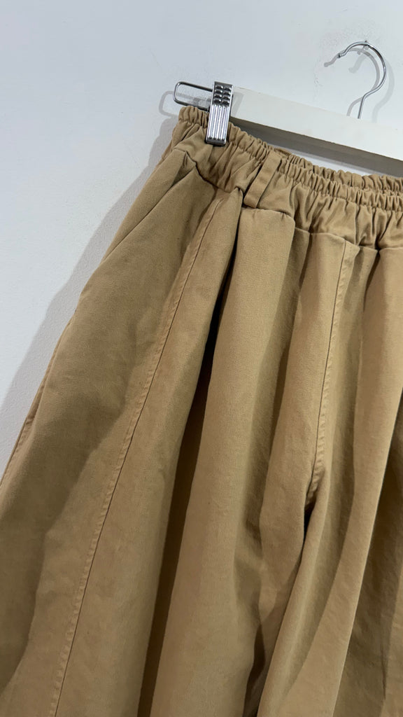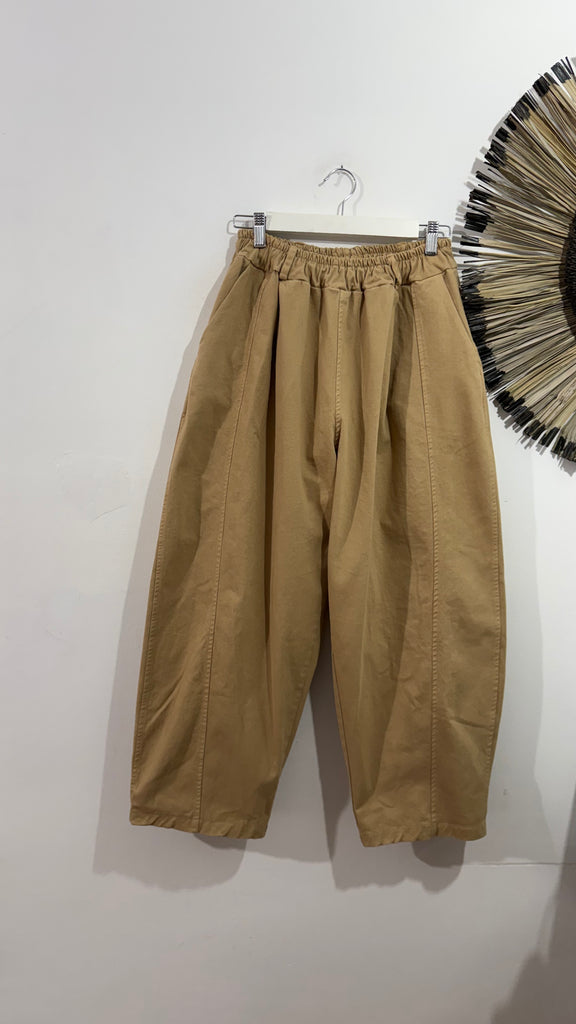 Pantalón de algodón en color camel. Es de corte Balloon. Súper cómodo, con goma en la cintura, se ajusta genial. Tiene bolsillos a los laterales y en parte trasera.