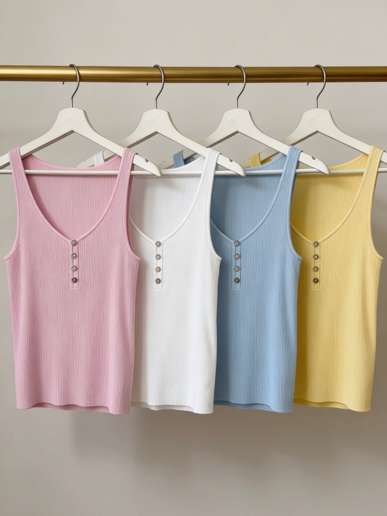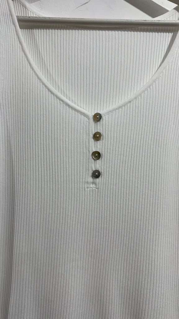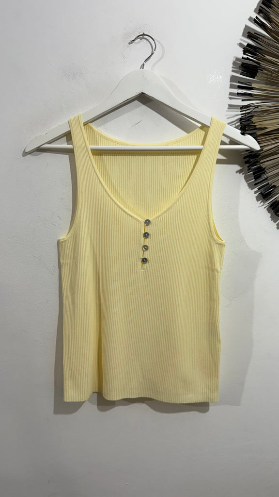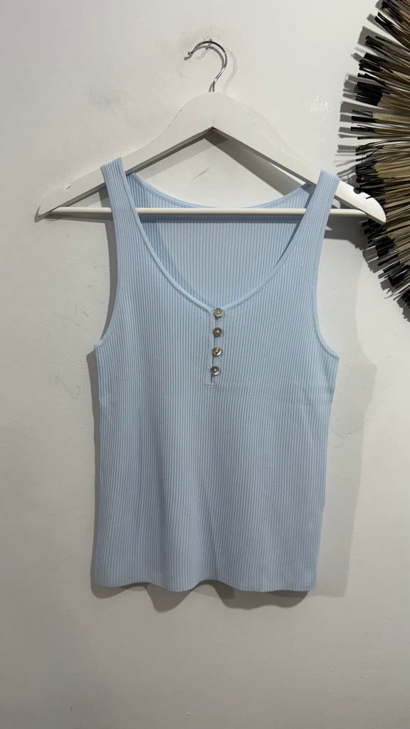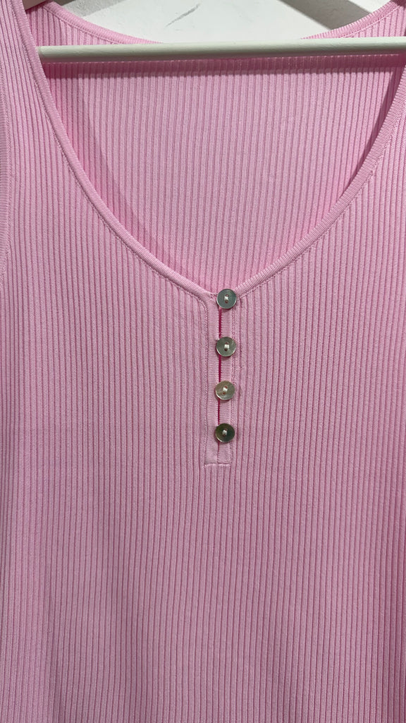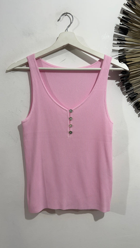Top de canalé de tirante grueso y escote a pico. Tiene mini botones en el escote nacarados. Es elástico y se adapta genial.